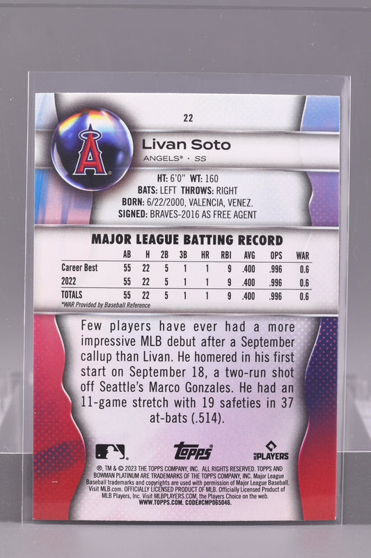 Livan Soto 2023 Bowman Platinum #22 Los Angeles Angels