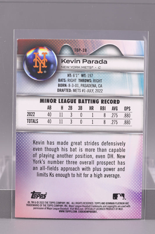 Kevin Parada 2023 Bowman Platinum #TOP-28 Top Prospects New York Mets