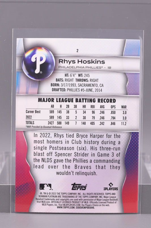 Rhys Hoskins 2023 Bowman Platinum #2 Philadelphia Phillies