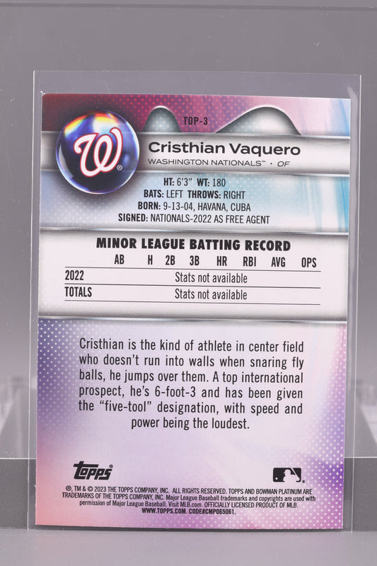 Cristhian Vaquero 2023 Bowman Platinum #TOP-3 Top Prospects Washington Nationals
