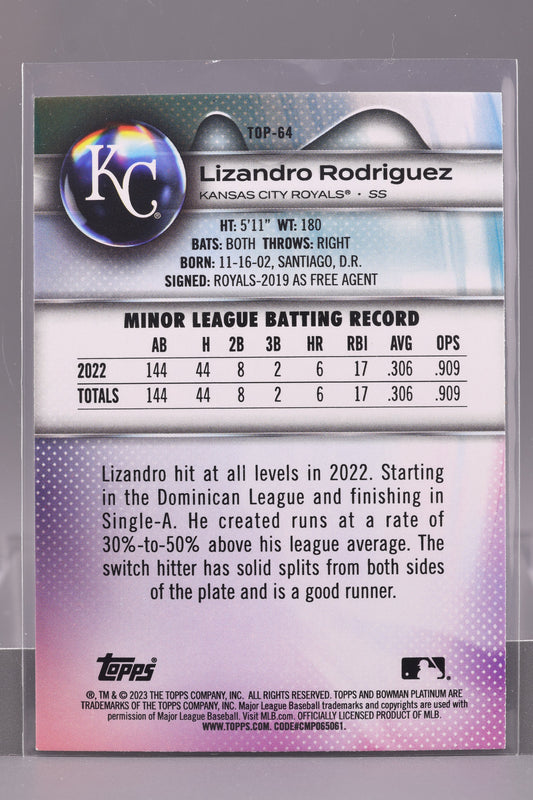 Lizandro Rodriguez 2023 Bowman Platinum #TOP-64 Top Prospects Kansas City Royals