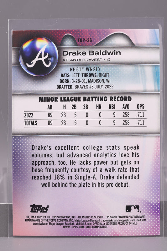Drake Baldwin 2023 Bowman Platinum #TOP-26 Top Prospects Atlanta Braves