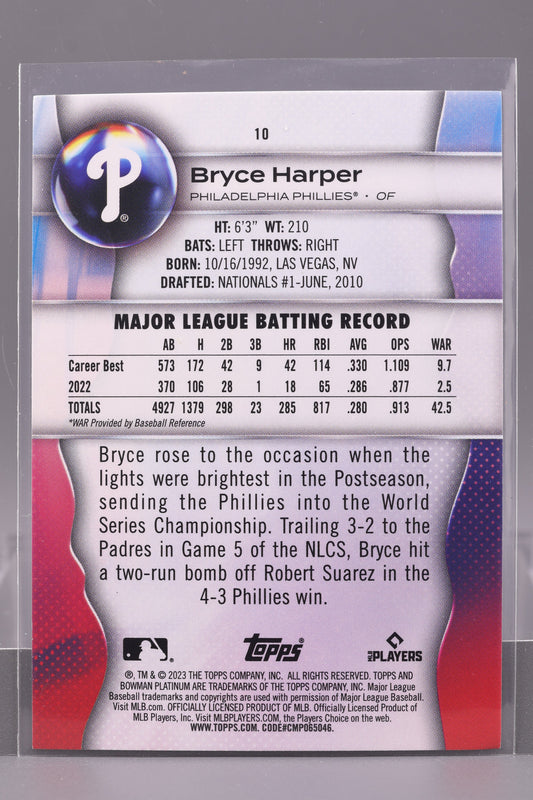 Bryce Harper 2023 Bowman Platinum #10 Noticeable curl on bottom left corner Philadelphia Phillies