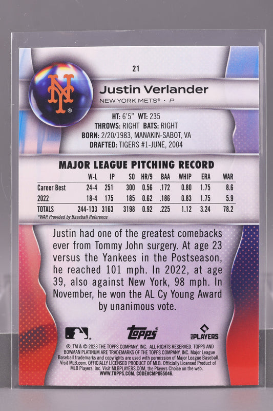 Justin Verlander 2023 Bowman Platinum #21 New York Mets