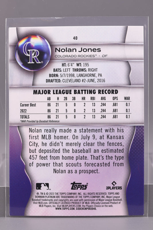 Nolan Jones 2023 Bowman Platinum #40 Colorado Rockies