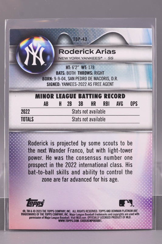 Roderick Arias 2023 Bowman Platinum #TOP-43 Top Prospects New York Yankees