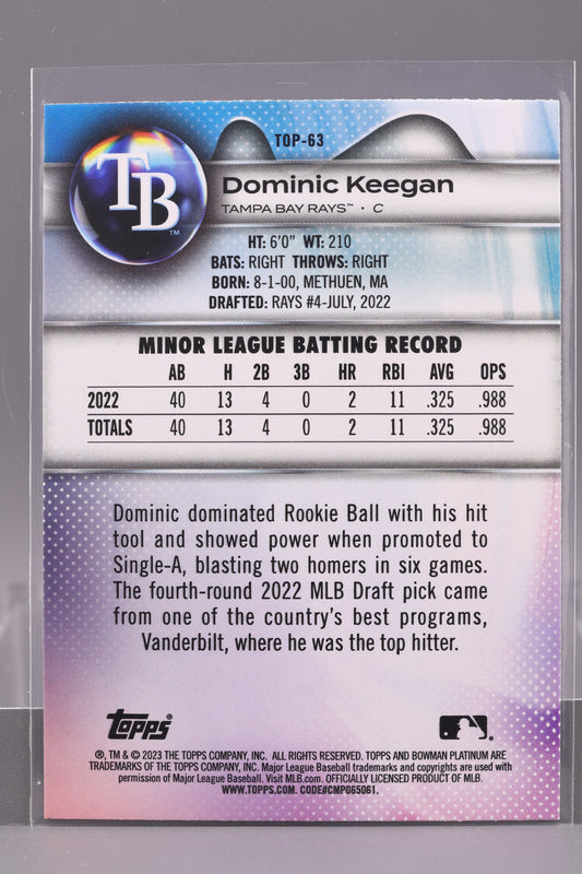 Dominic Keegan 2023 Bowman Platinum #TOP-63 Top Prospects Tampa Bay Rays