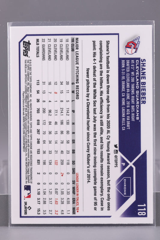 Shane Bieber 2023 Topps Chrome #118 Cleveland Guardians