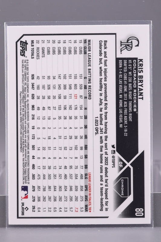 Kris Bryant 2023 Topps Chrome #80 Colorado Rockies
