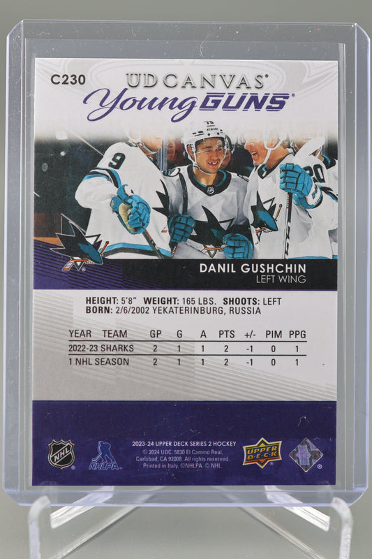 Danil Gushchin 2023-24 Upper Deck Series 2 #C230 Young Guns UD Canvas RC Sharks