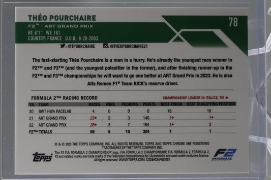Theo Pourchaire 2023 Topps Chrome Formula 1 #78 FUTURE STARS F2