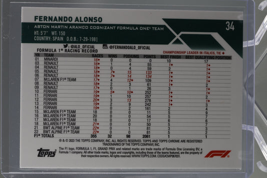 Fernando Alonso 2023 Topps Chrome Formula 1 #34 Aston Martin F1