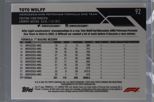 Toto Wolff 2023 Topps Chrome Formula 1 #92 Mercedes-AMG Petronas
