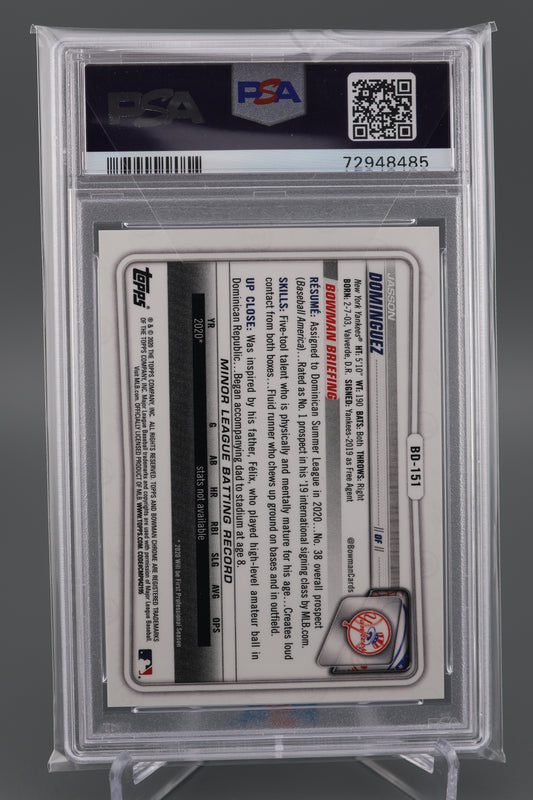 Jasson Dominguez 2020 Bowman Draft #BD151 Chrome Purple Refractor PSA 10
