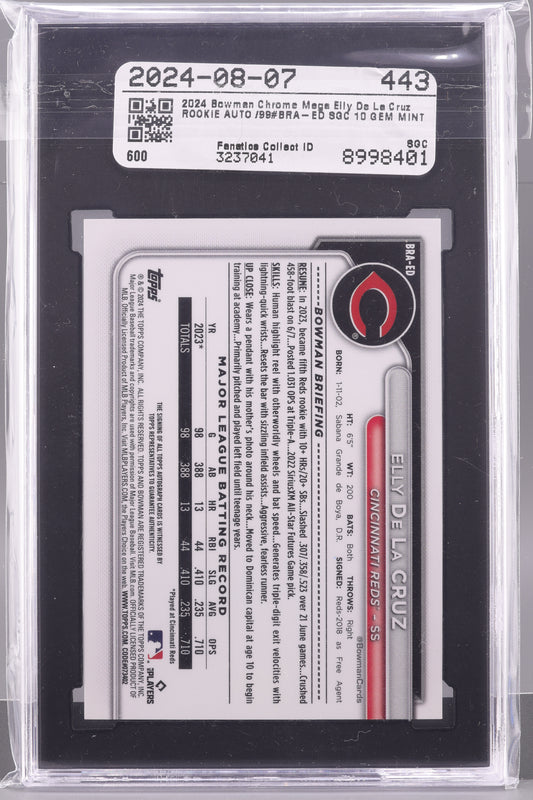 Elly De La Cruz 2024 Bowman Mega Box BRA-ED Chrome Autograph SGC 10/AUTO 10 RC Cinncinati Reds