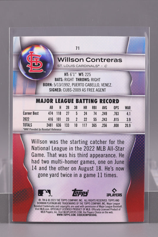 Willson Contreras 2023 Bowman Platinum #71 St. Louis Cardinals