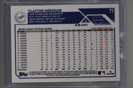 Clayton Kershaw 2023 Topps Chrome X-Fractor Refractor #77 Los Angeles Dodgers