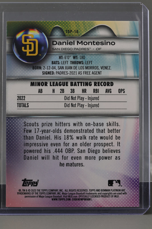 Daniel Montesino 2023 Bowman Platinum Top Prospects #TOP-16 San Diego Padres