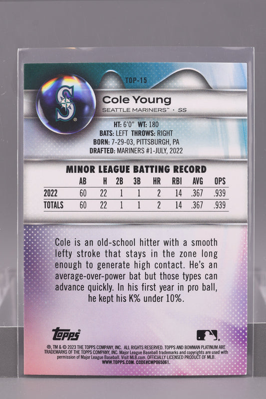 Cole Young 2023 Bowman Platinum Top Prospects #TOP-15 Seattle Mariners