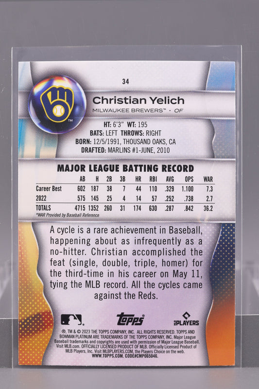Christian Yelich 2023 Bowman Platinum #34 Milwaukee Brewers