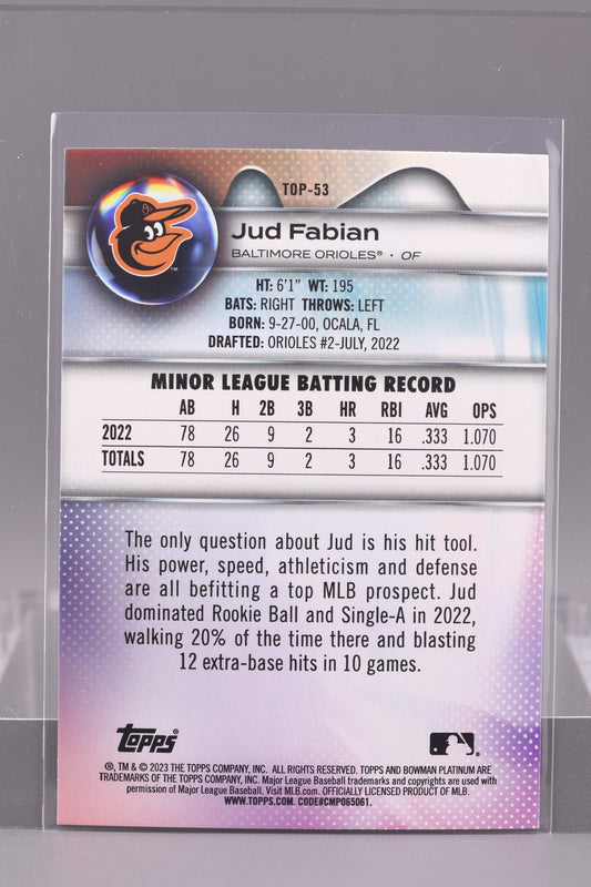 Jud Fabian 2023 Bowman Platinum #TOP-53 Top Prospects Baltimore Orioles