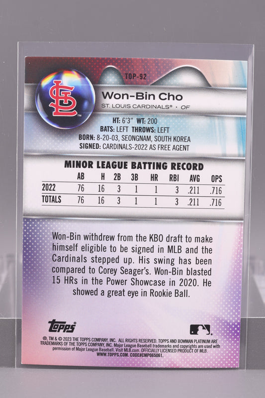 Won-Bin Cho 2023 Bowman Platinum #TOP-92 Top Prospects St. Louis Cardinals