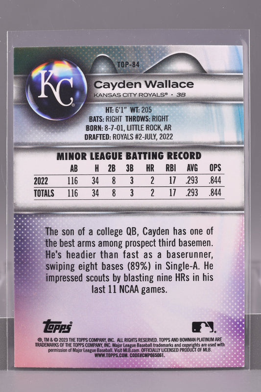 Cayden Wallace 2023 Bowman Platinum #TOP-84 Top Prospects Kansas City Royals