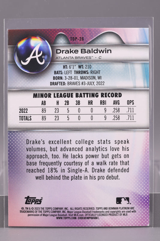 Drake Baldwin 2023 Bowman Platinum #TOP-26 Top Prospects Atlanta Braves
