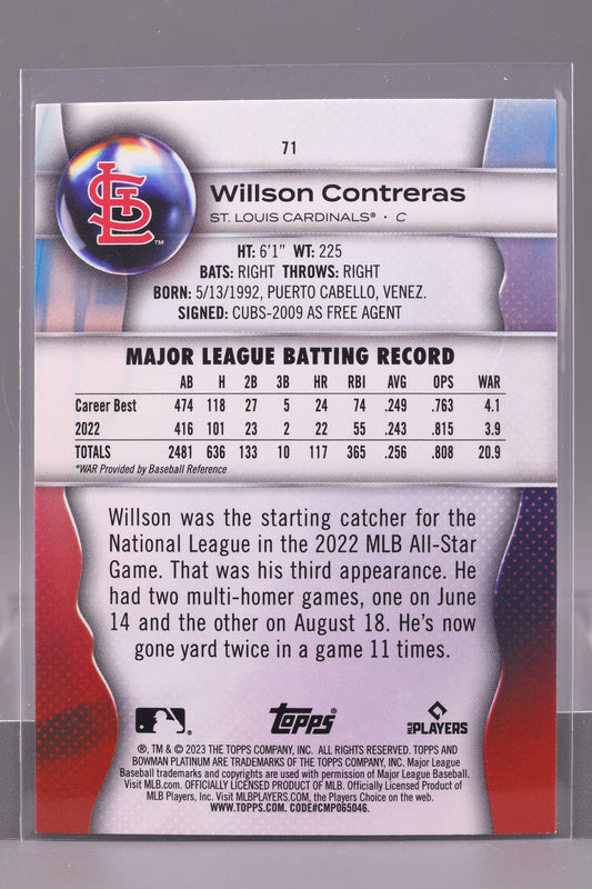 Willson Contreras 2023 Bowman Platinum #71 St. Louis Cardinals