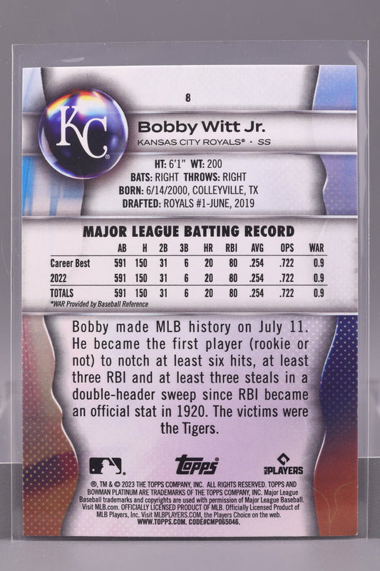 Bobby Witt Jr. 2023 Bowman Platinum #8 Noticeable curl on bottom left corner Kansas City Royals