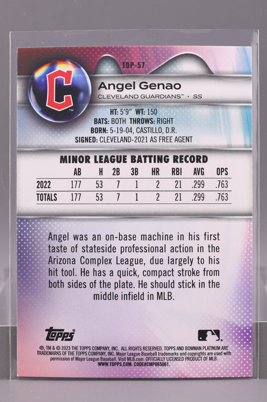 Angel Genao 2023 Bowman Platinum #TOP-57 Top Prospects Cleveland Guardians