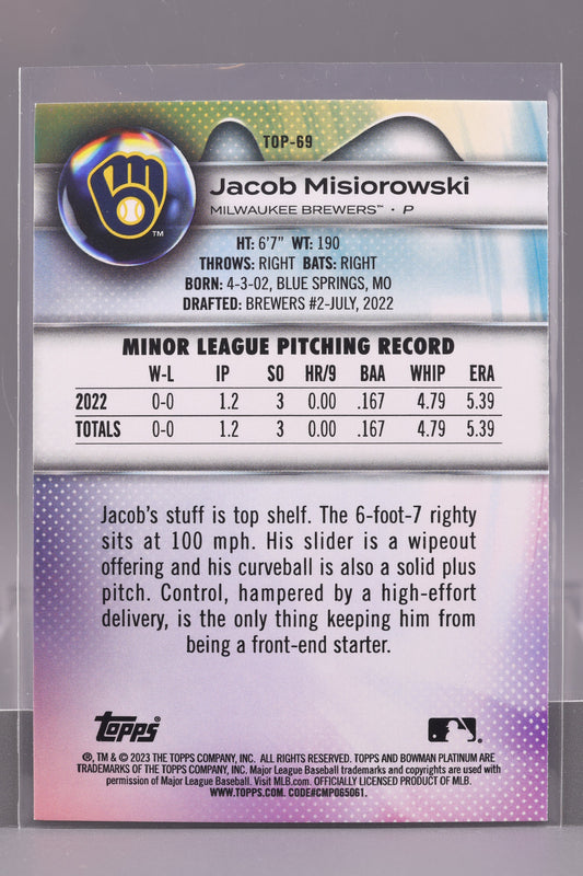 Jacob Misiorowski 2023 Bowman Platinum #TOP-69 Top Prospects Milwaukee Brewers