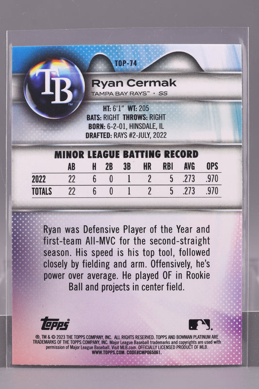Ryan Cermak 2023 Bowman Platinum #TOP-74 Top Prospects Tampa Bay Rays