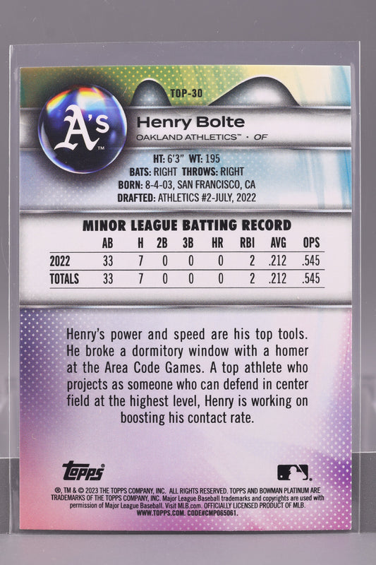 Henry Bolte 2023 Bowman Platinum #TOP-30 Top Prospects Oakland Athletics