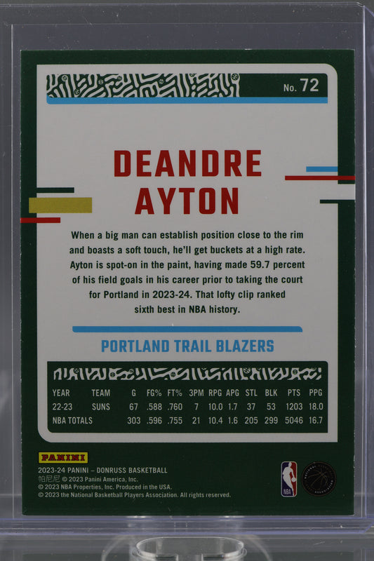 Deandre Ayton 2023 Donruss Green Laser Holo #72 Portland Trail Blazers
