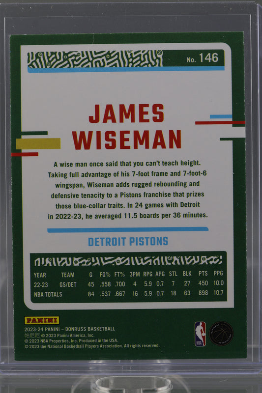 James Wiseman 2023 Donruss Green Laser Holo #146 Detroit Pistons
