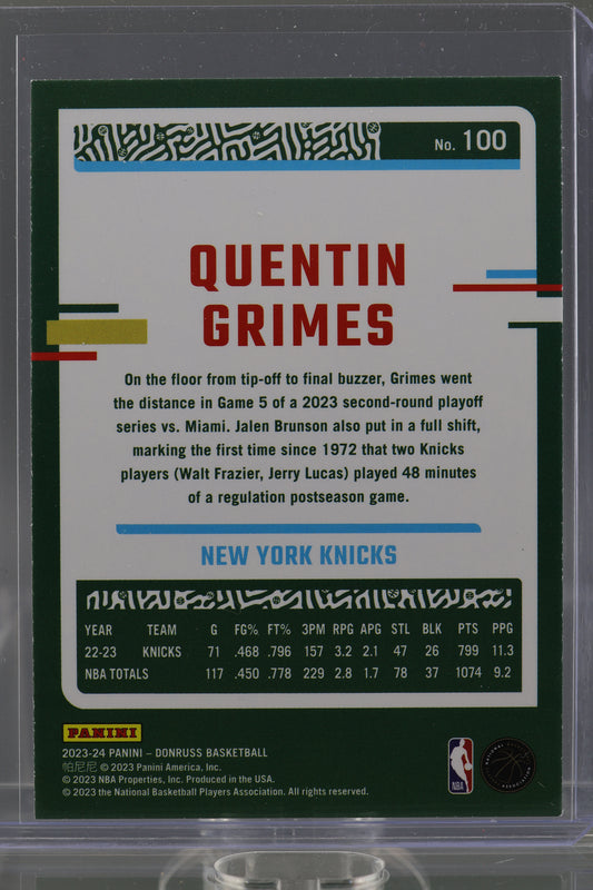 Quentin Grimes 2023 Donruss Green Laser Holo #100 New York Knicks