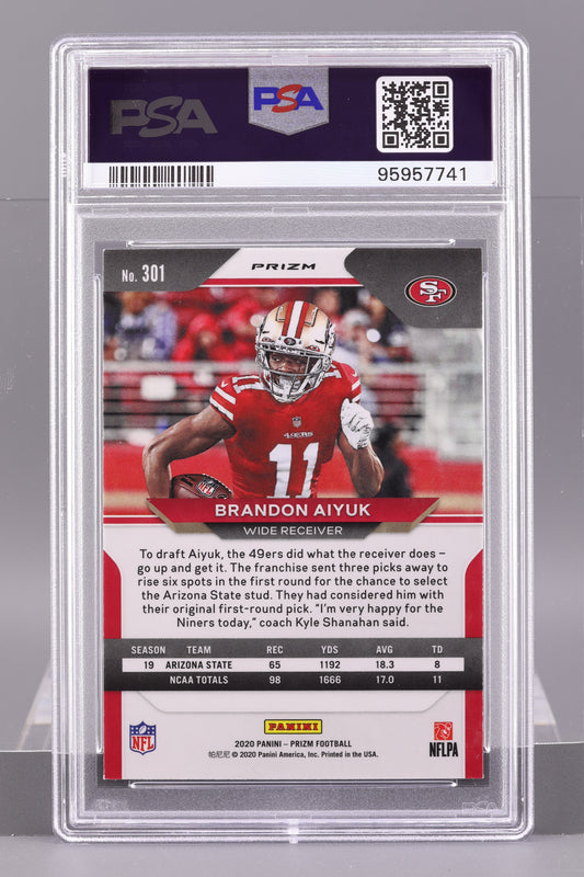 Brandon Aiyuk 2020 Panini Prizm #301 Red White Blue Prizm PSA 8 Rookie RC