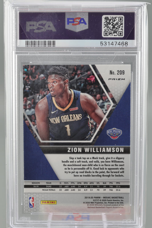 Zion Williamson 2019 Mosaic #209 Mosaic Prizm PSA 10 New Orleans Pelicans