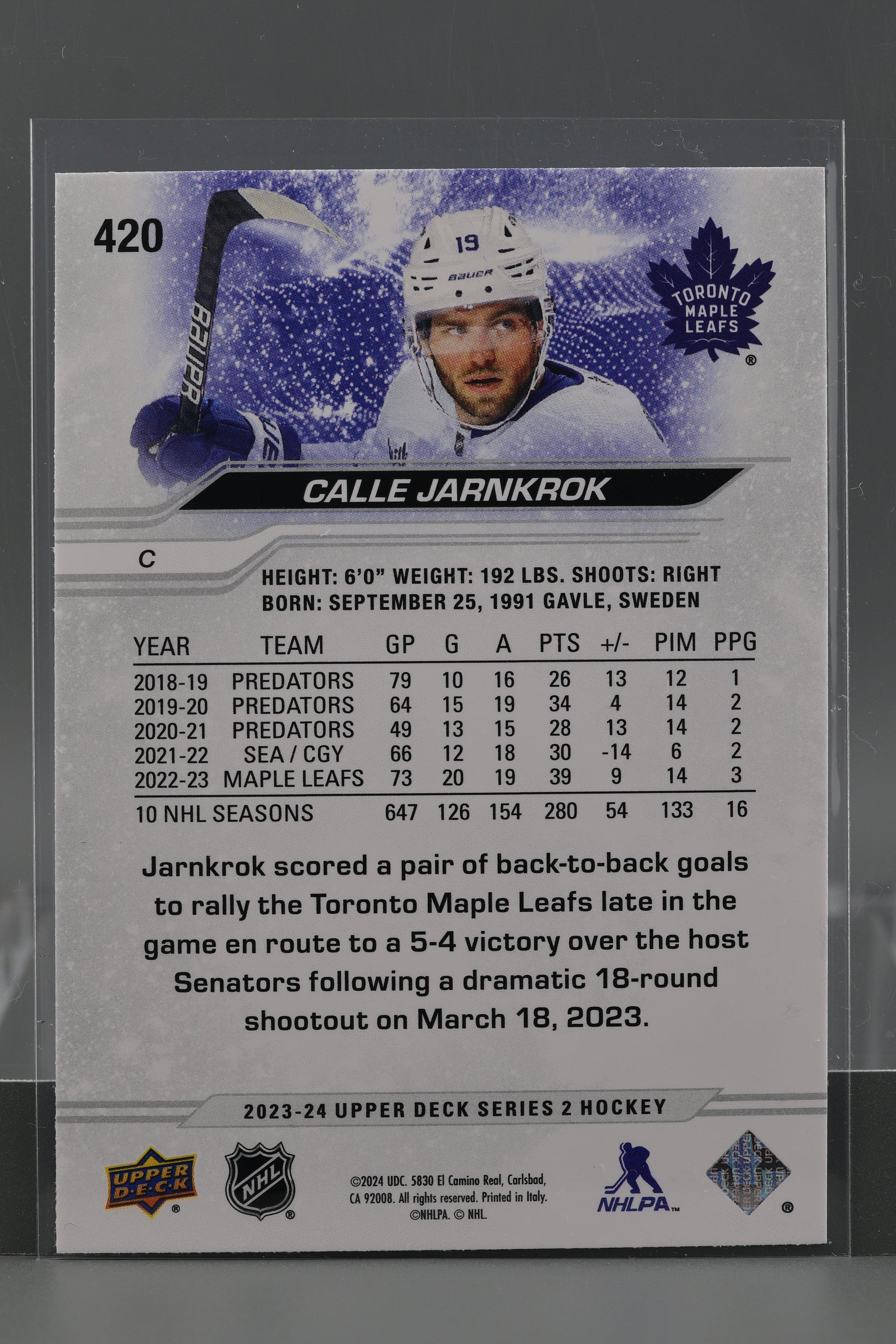 Calle Jarnkrok 2023 Upper Deck Series Two #420 Toronto Maple Leafs