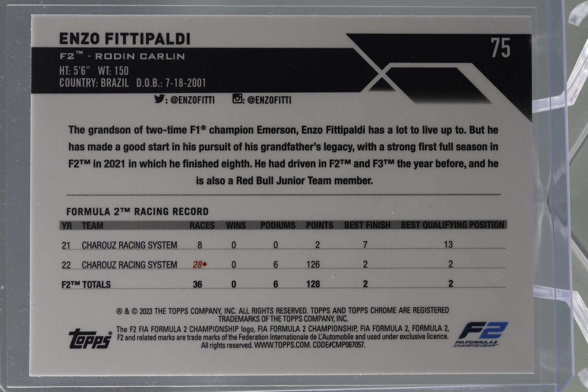 You are purchasing a Topps Chrome Formula 1 Enzo Fittipaldi #75. You will receive the exact item in the photographs. Thank you for looking. Listed With Mascot.