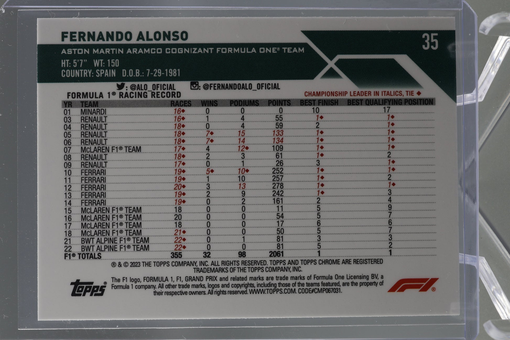 Fernando Alonso 2023 Topps Chrome Formula 1 #35 RACECAR Aston Martin