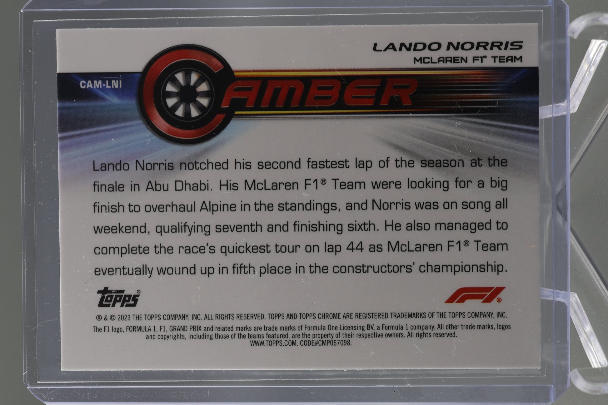 Lando Norris 2023 Topps Chrome Formula 1 #CAM-LNI Camber McLaren F1 Team