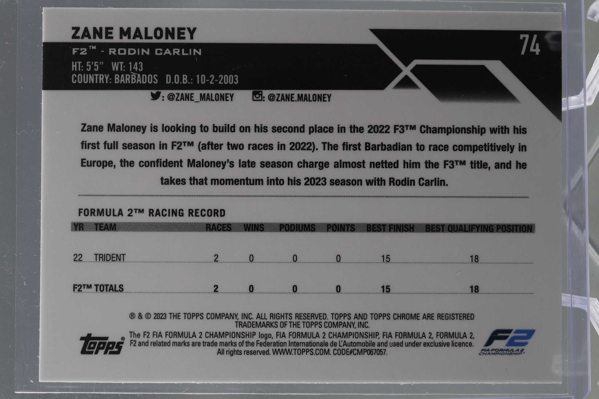 Zane Maloney 2023 Topps Chrome Formula 1 #74 FUTURE STARS Rodin Carlin F2